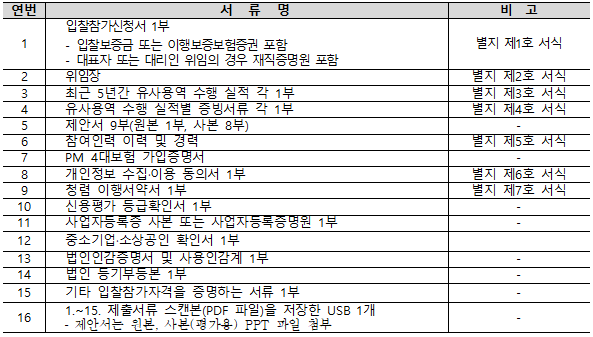 가. 제안서 작성제출에 따른 비용은 입찰자 부담으로 하며, 제출된 서류는 일체 반환하지 않음